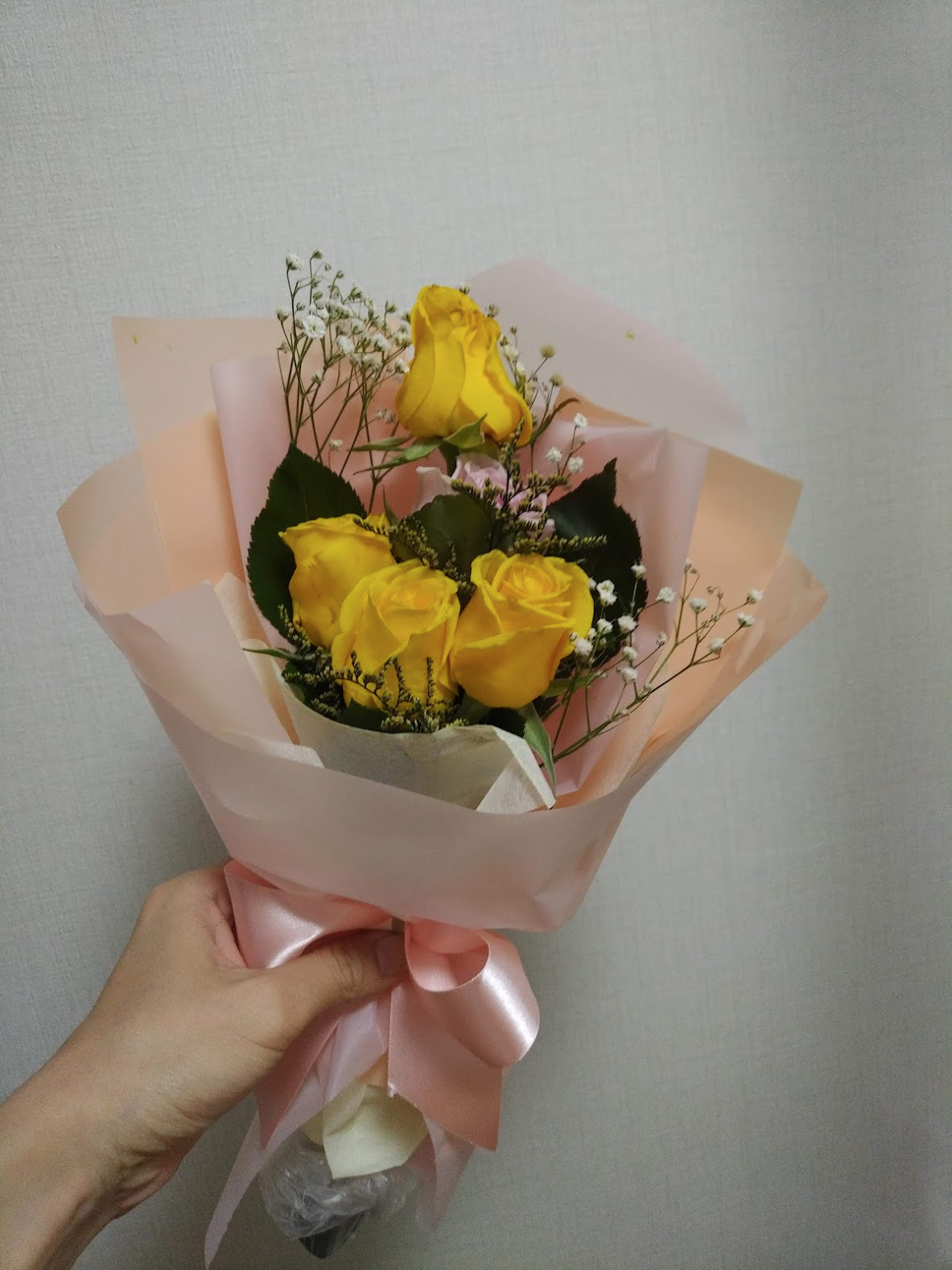 노란 장미와 핑크색 포장지 은근 잘 어울리는 조합이네요.