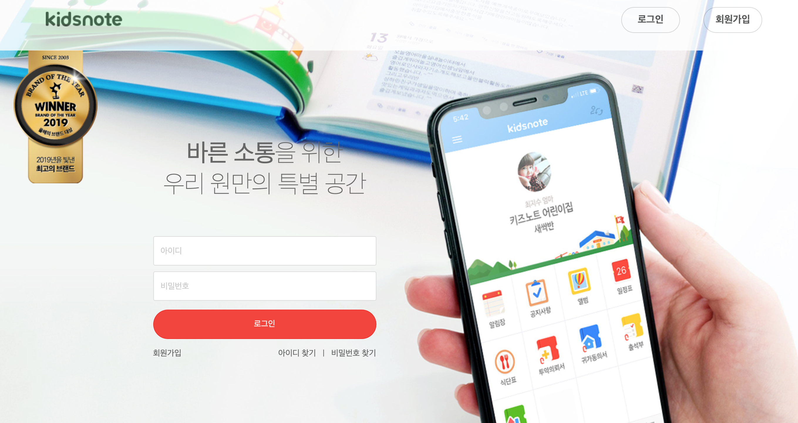 아이디와 패스워드 입력하면 키즈노트로 이동하네요.