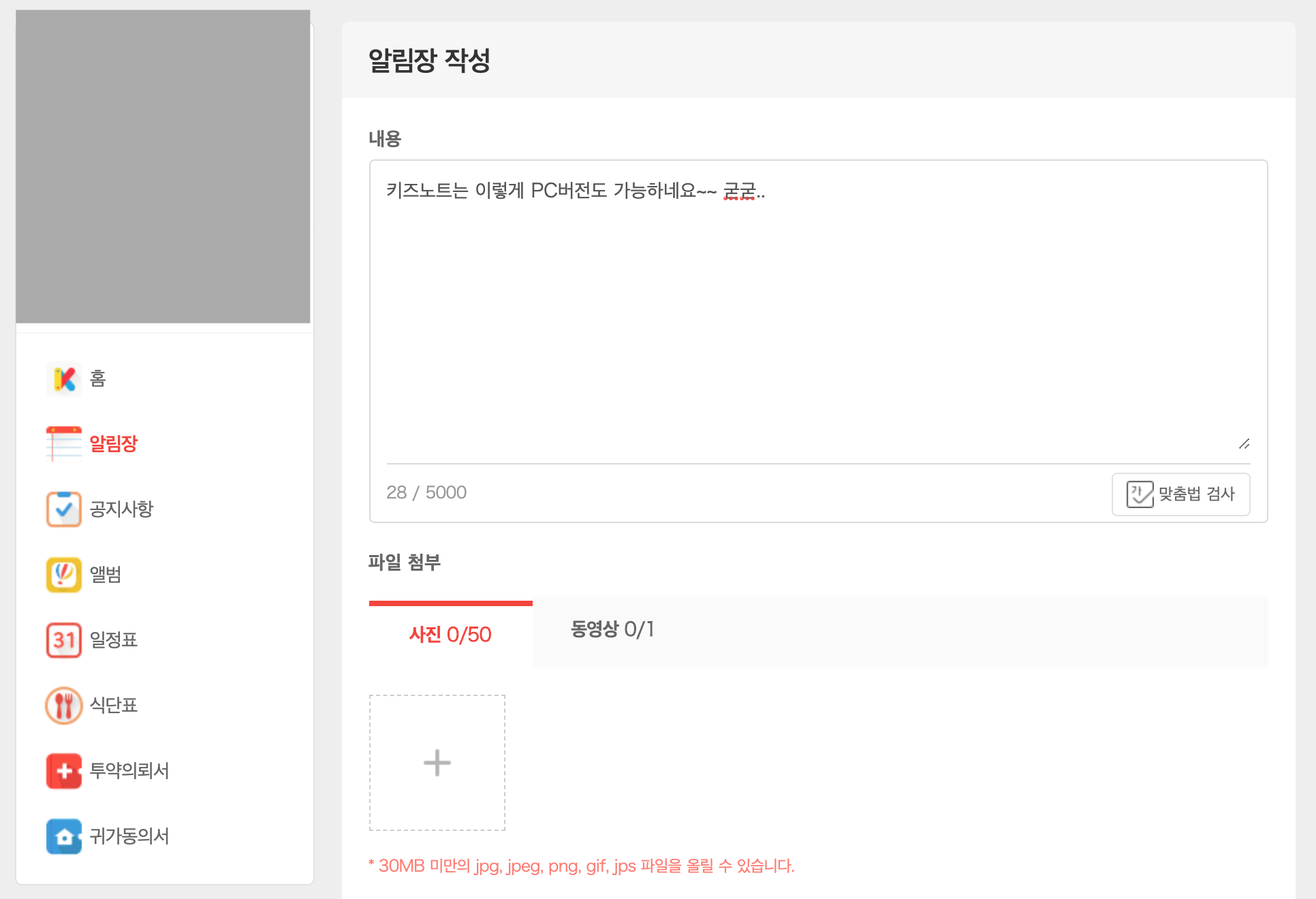 키즈노트 PC버전으로 알림장 작성하기