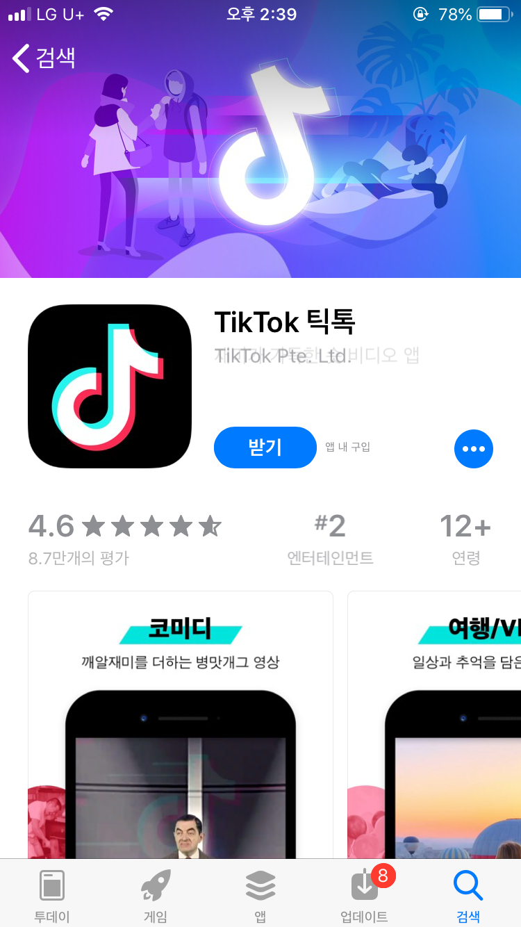 틱톡은 구글플레이 또는 앱스토어에서 다운로드 무료로 받을 수 있습니다.