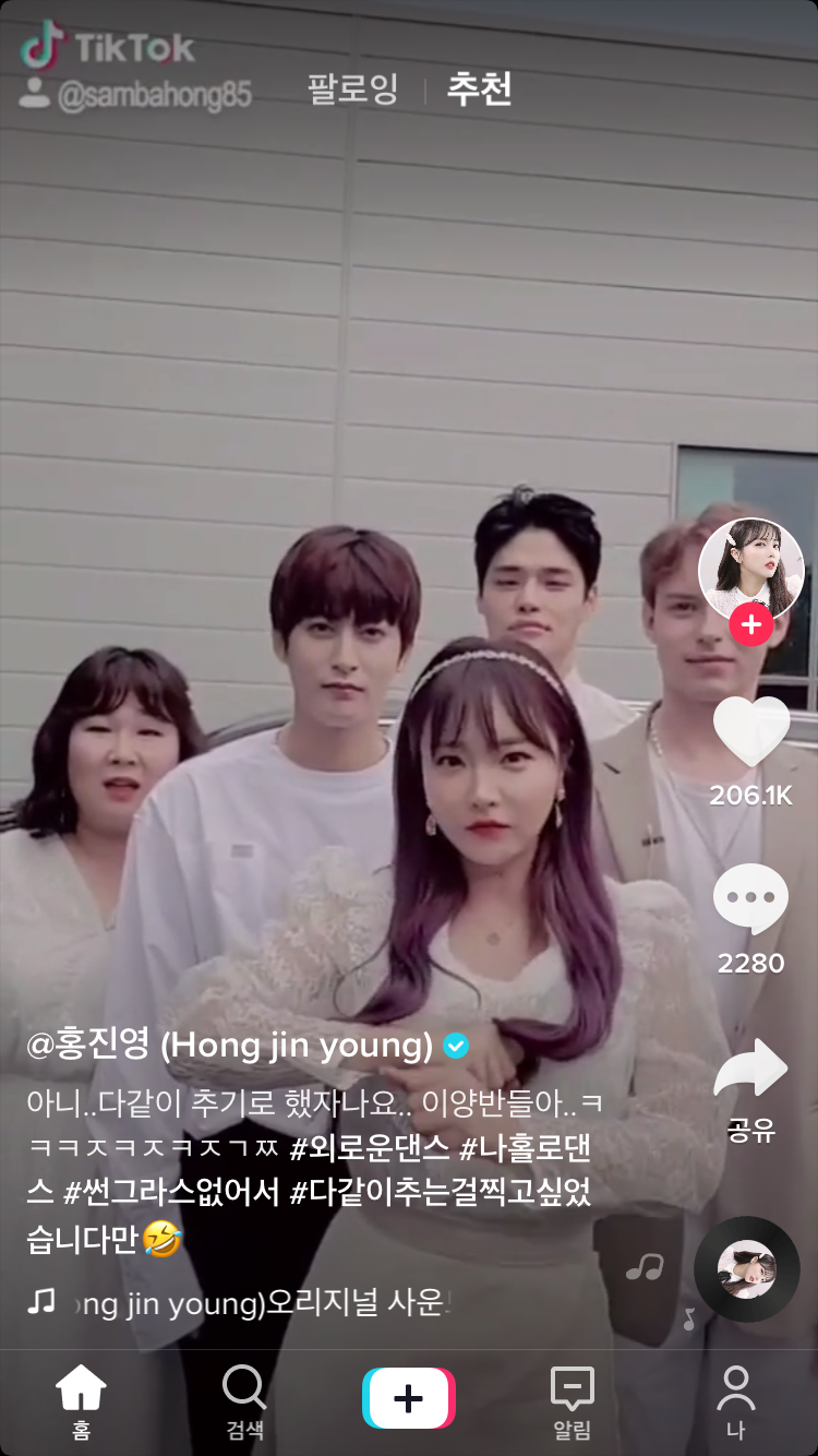 틱톡을 실행하면 영상이 제일 먼저 나옵니다.