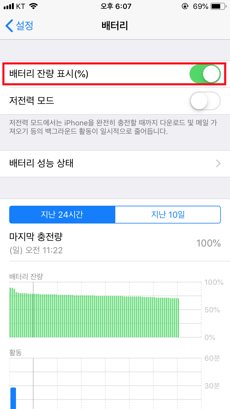 아이폰 배터리 잔량 표시방법
