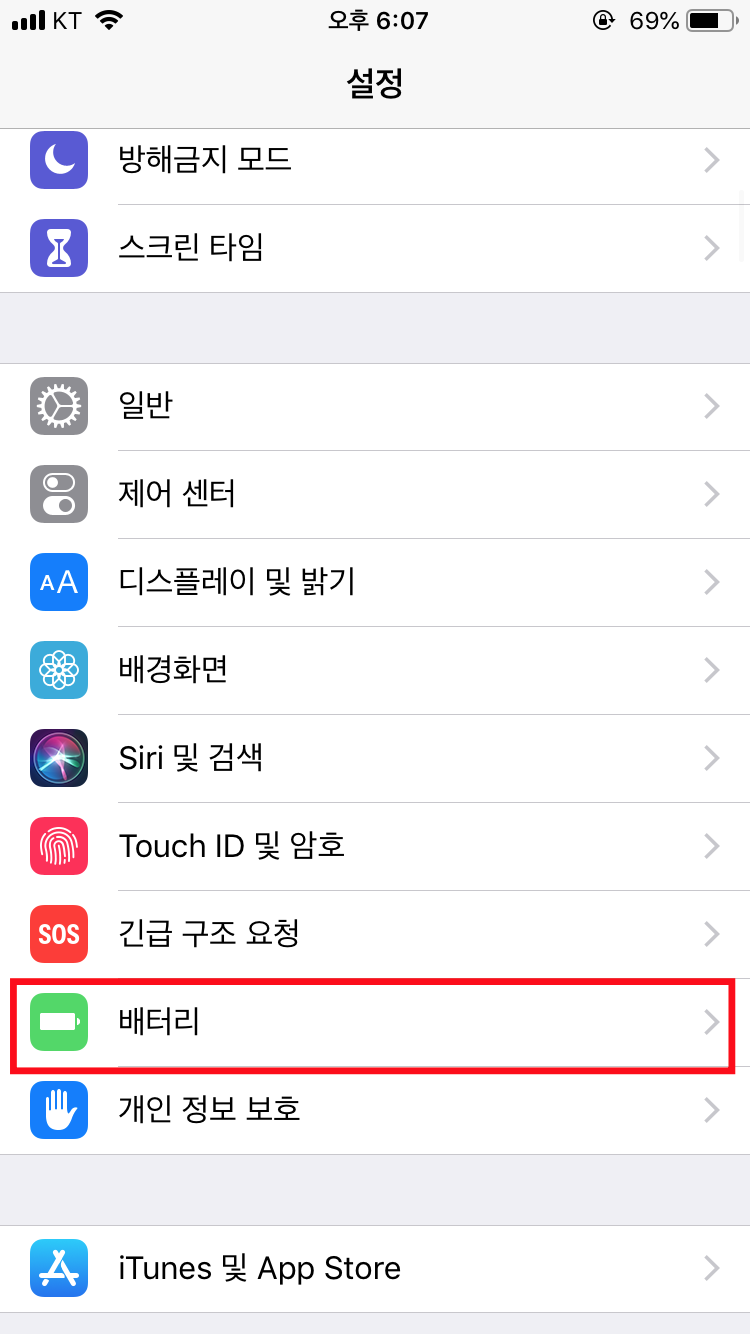 2. 화면을 아래로 내리면 <배터리>를 클릭해줍니다.