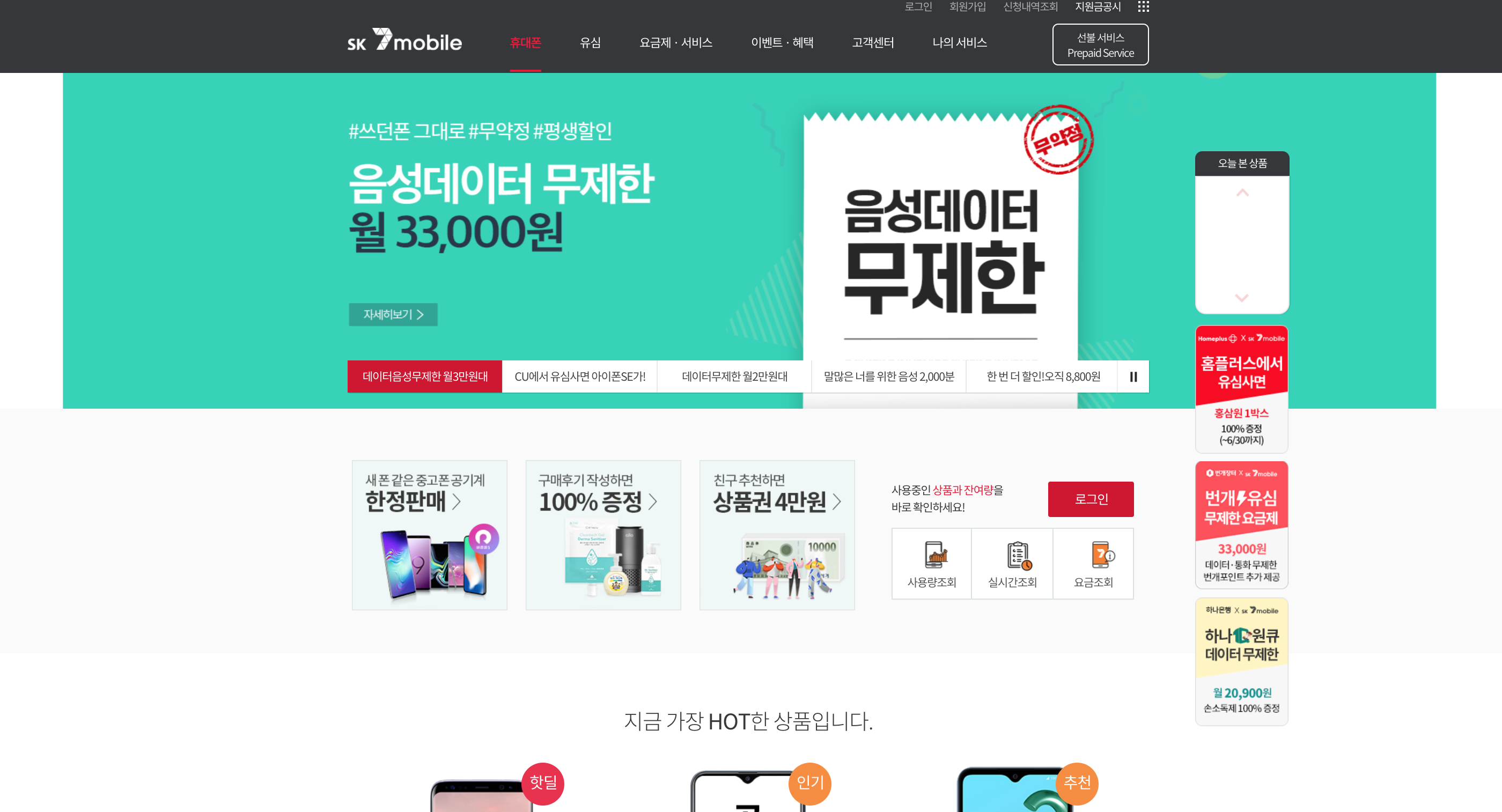 SK계열사인 SK텔링크에서 SK텔레콤으로 알뜰폰 서비스를 제공하는 곳입니다.
