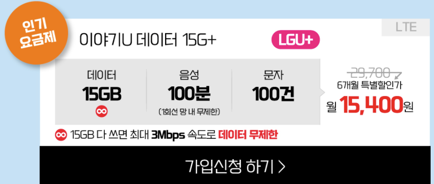 사실 15,000원 요금제라면 보통 6G 데이터를 주는 요금제 가격인데, 이런 파격적인 가격이 나왔다고 해서 처음엔 잘못 본 줄 알았습니다.