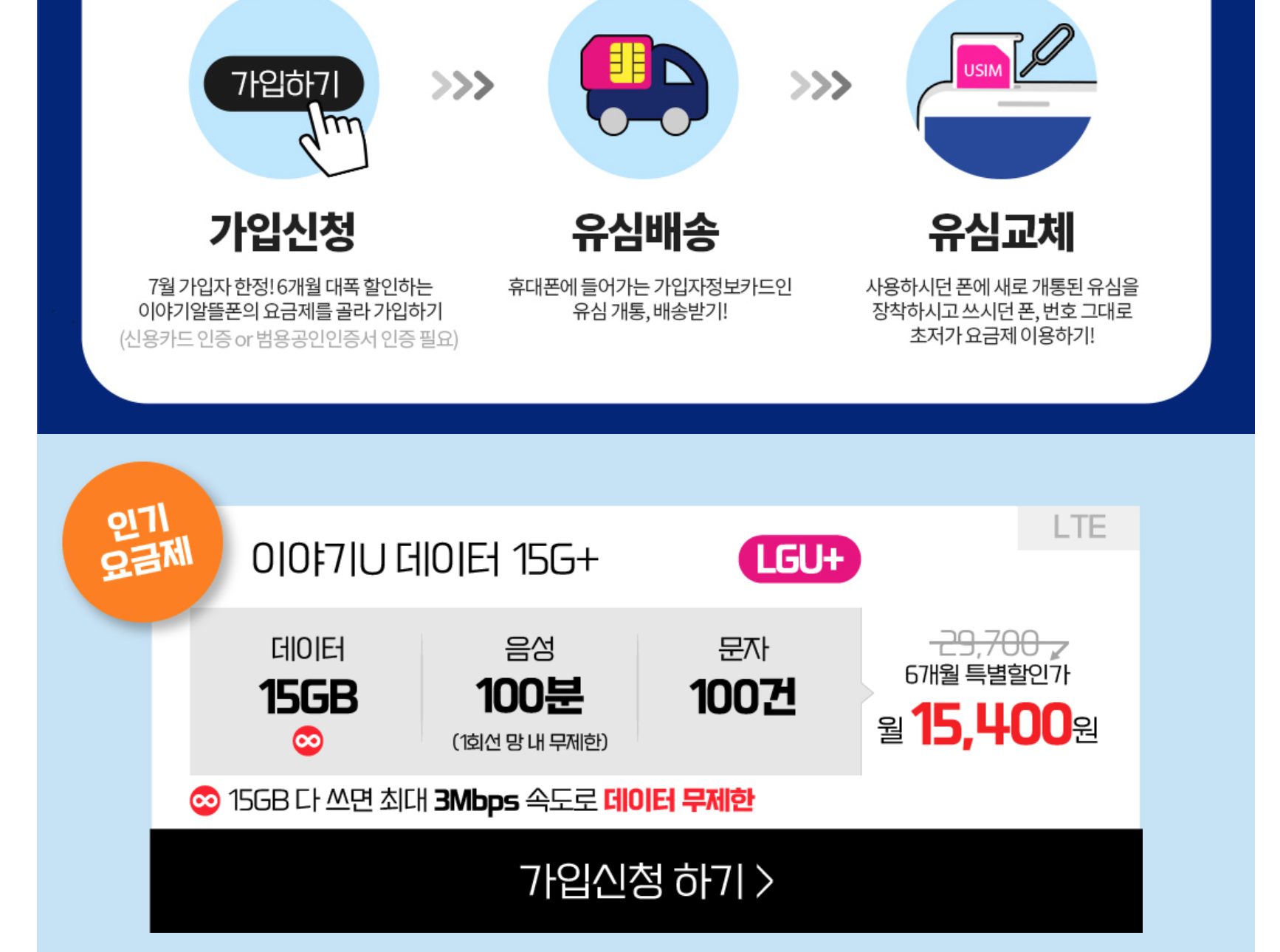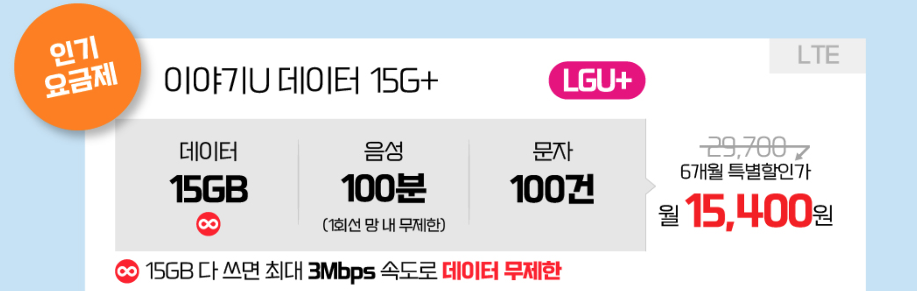 3. 상세페이지를 보시면 중간쯤 <이야기U 데이터 15G+> 이미지가 보이고,
