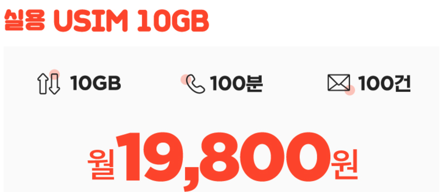 가격도 저렴하네요. 2만원이 채 안되는 19800원에 데이터 10GB, 음성 100분, 문자 100건