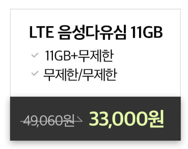 보통 10GB요금제보다는 11GB 요금제가 많았는데, 문제는 가격입니다.