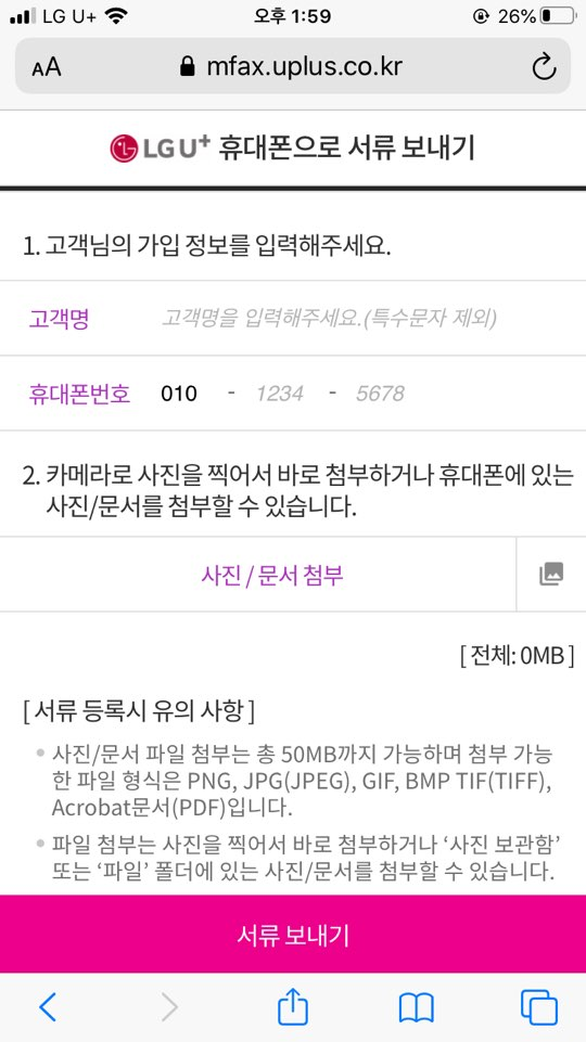 문자로 받은 URL을 클릭하면 서류 보내는 곳으로 연결되고,