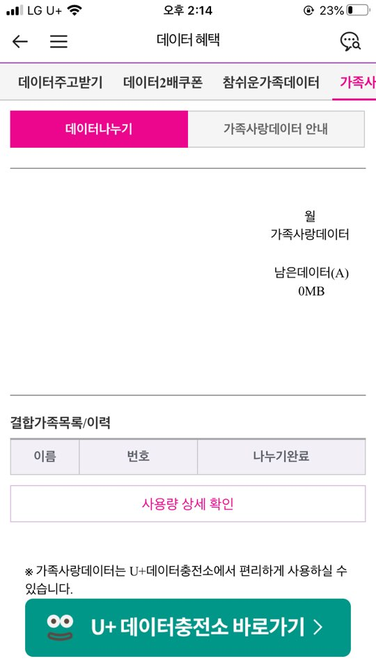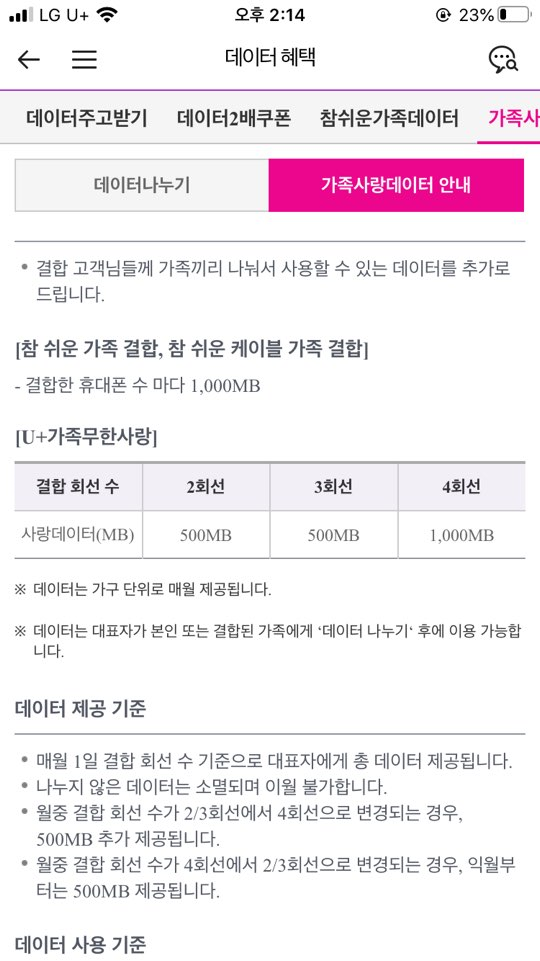 유플러스에서는 결합회선에 대해선 가족 데이터를 제공합니다.