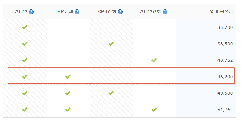 인터넷 + TV 포함해서 46,200원이 부담되었는데,