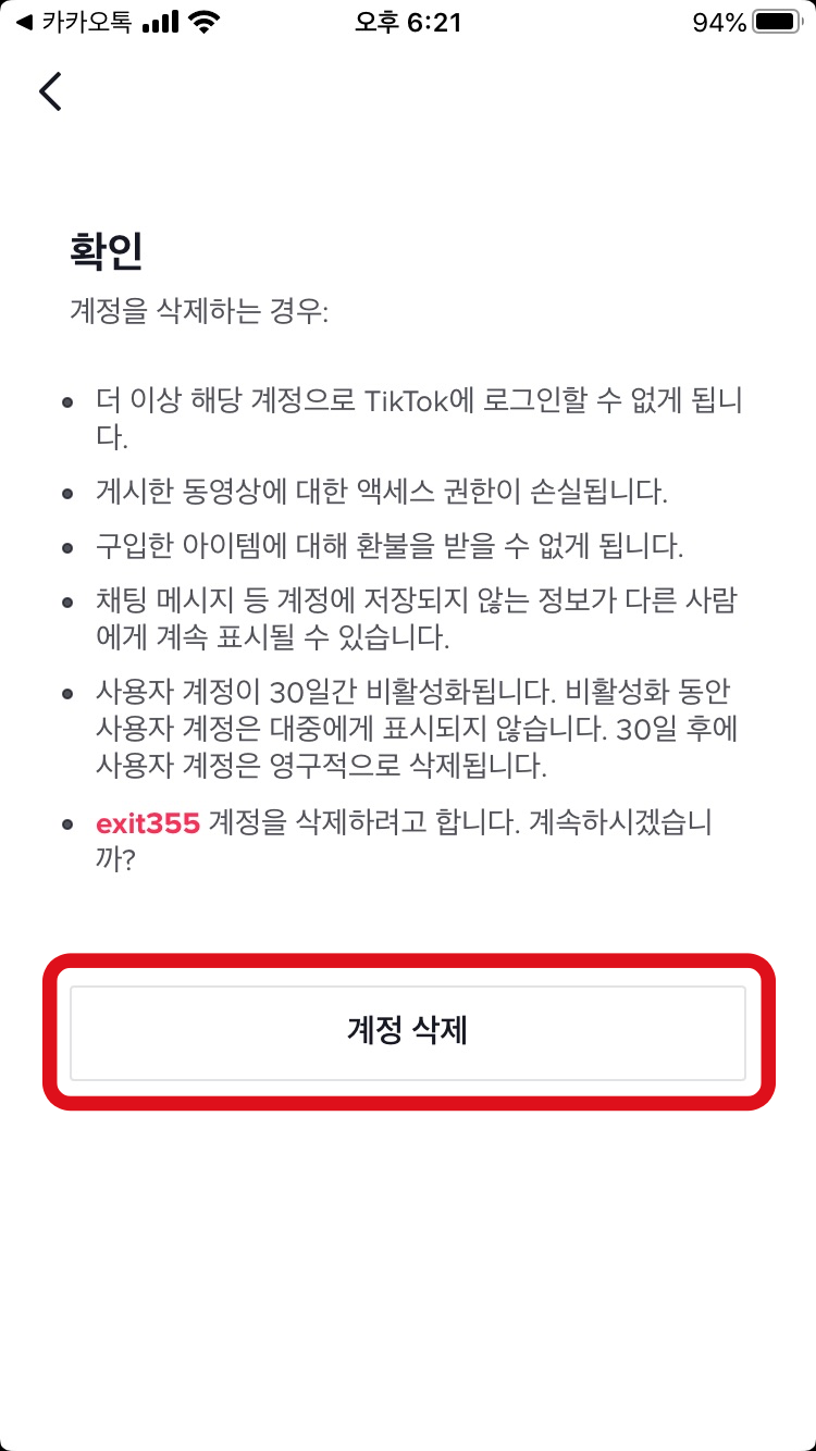 틱톡 앱 삭제만으로도 찜찜하신 분들은 아예 틱톡 계정을 탈퇴하여,