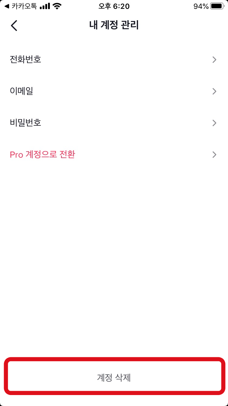 1. 하단 탭 중에 5번째 탭으로 이동 > 내 계정관리 > 계정삭제