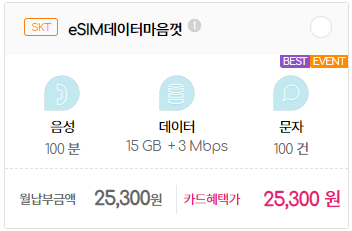 제가 가입한 티플러스 요금제는 <eSIM데이터마음껏>입니다.