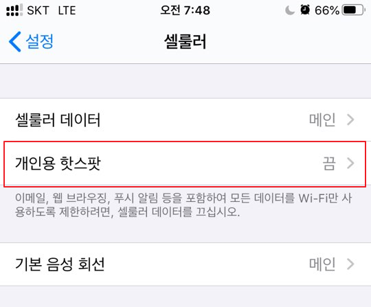 이제 개인용 핫스팟 메뉴를 설정할 수 있게 되었습니다.