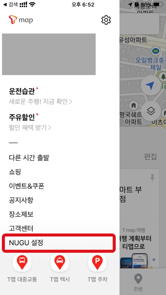 이러한 문제를 해결하기 위해선 티맵에서 제공하는 누구(NUGU)를 비활성화 하면 된다고 합니다.