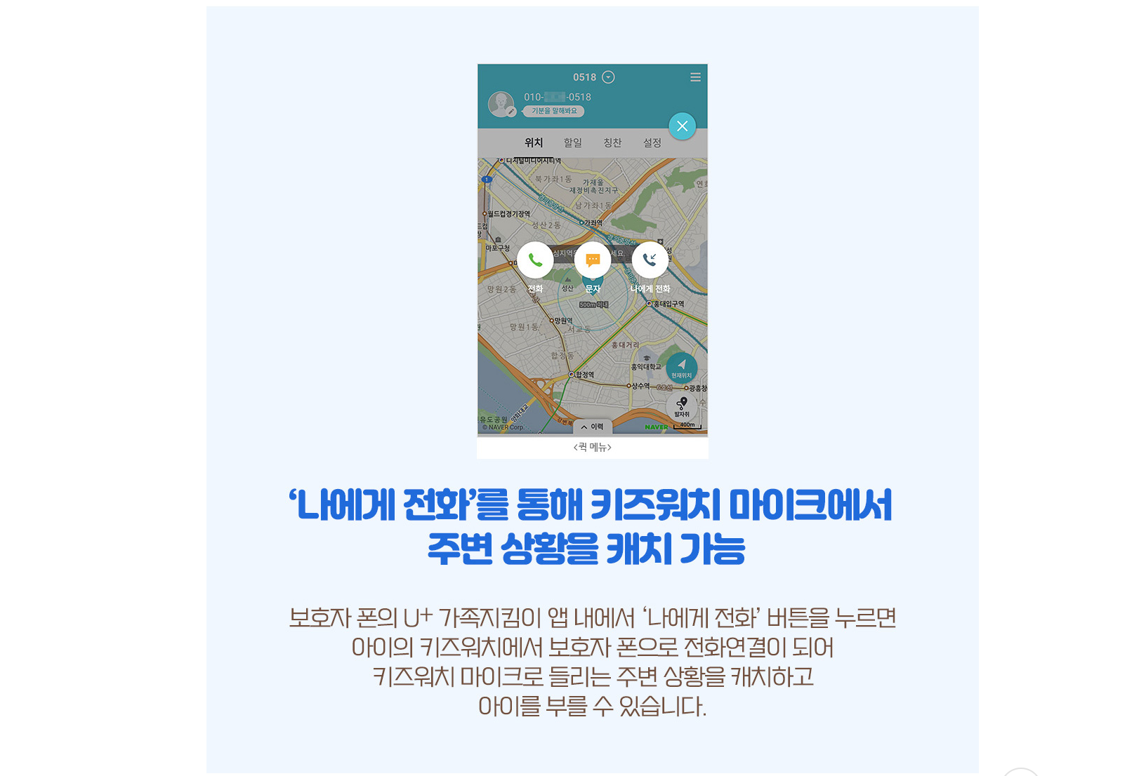 <U+ 가족알리미> 앱을 설치하고 로그인해야 자녀의 위치를 확인할 수 있습니다.