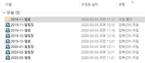 다운로드는 요렇게 월별로 차곡차곡 다운로드가 됩니다.