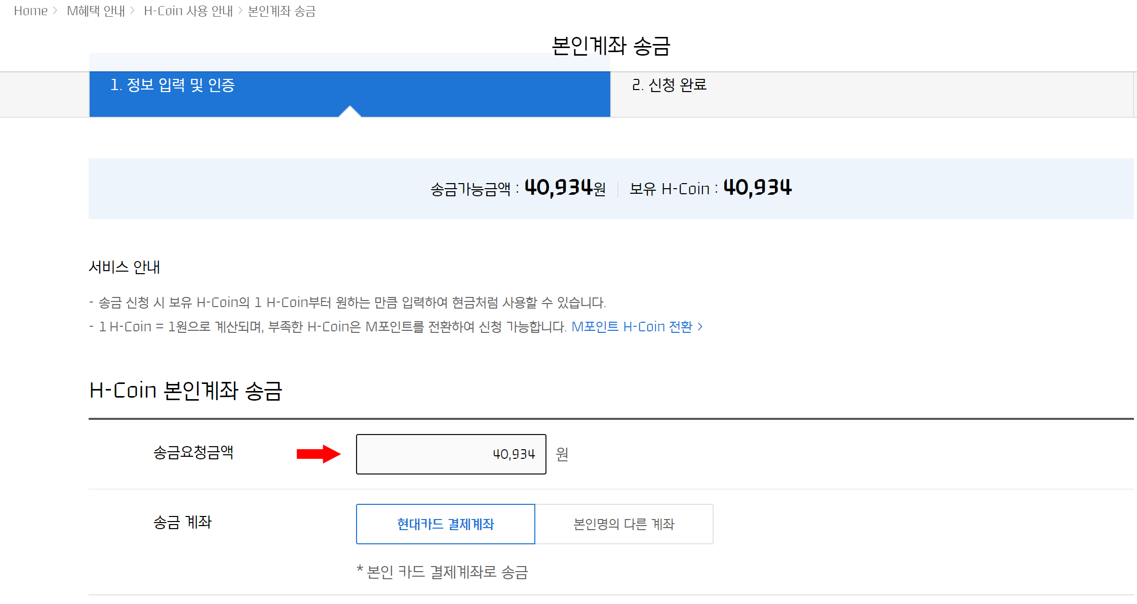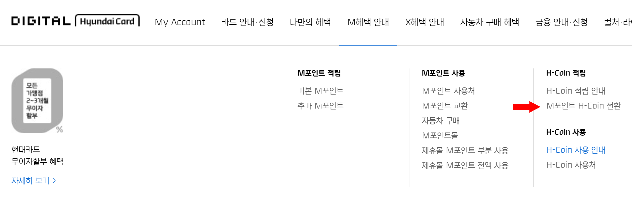 현대카드 모바일 웹/PC > M포인트 H-Coin 전환