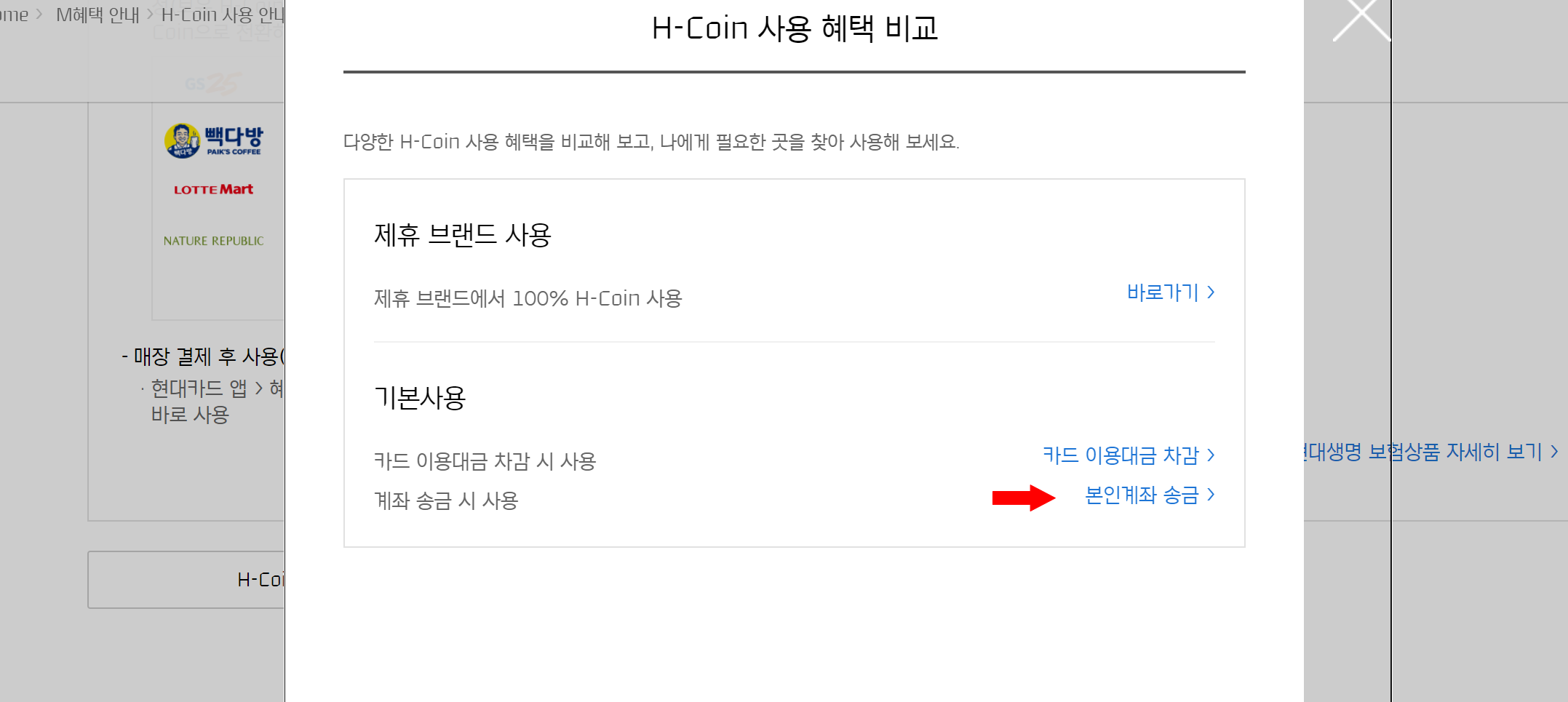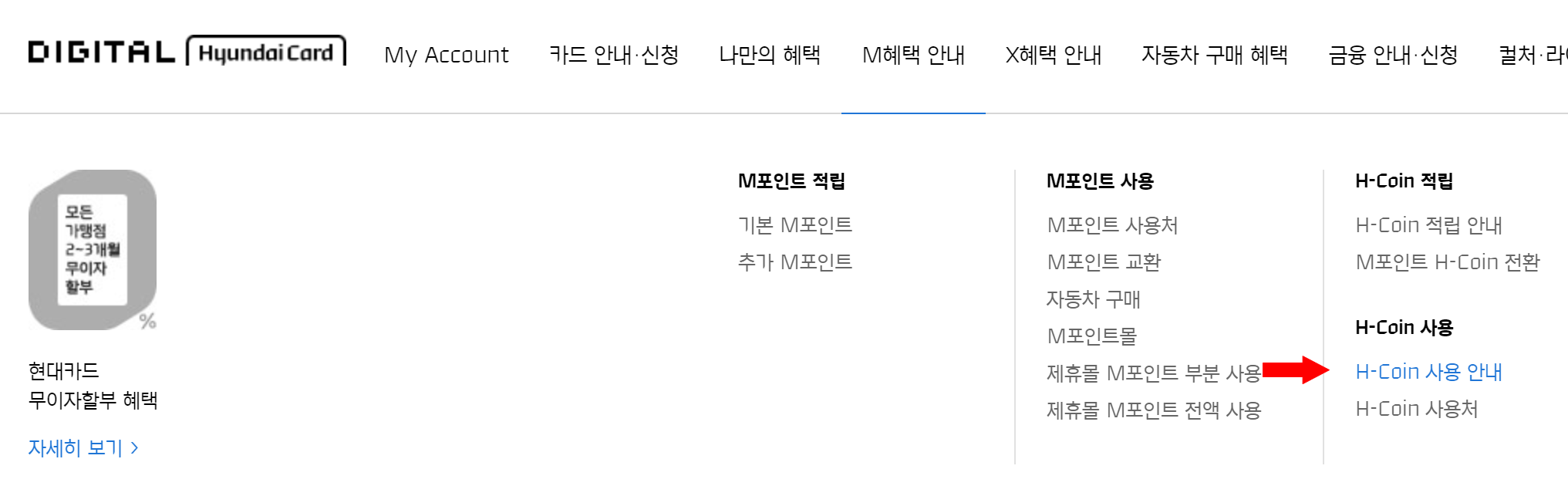1. 현대카드 홈페이지 > H-Coin 사용안내로 이동