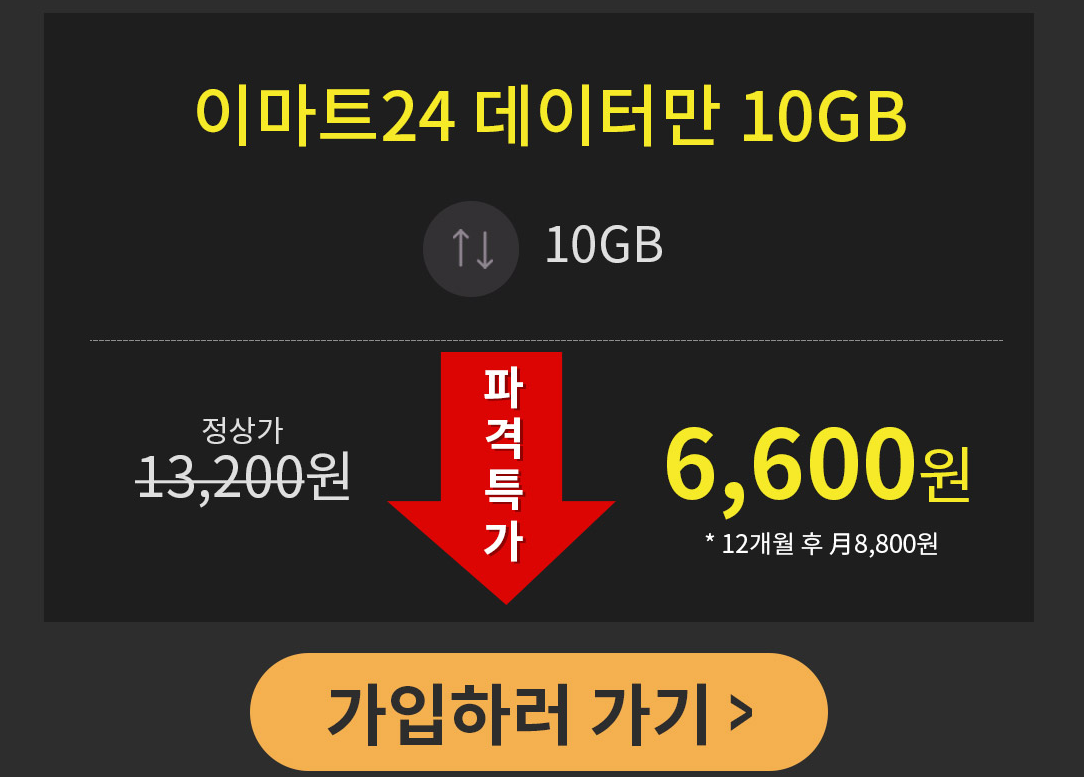 알뜰폰 통신사에 따라 요금이 조금씩 다르지만 10G는 6,600원~11,000원, 20G는 9,900원~22,000원입니다.