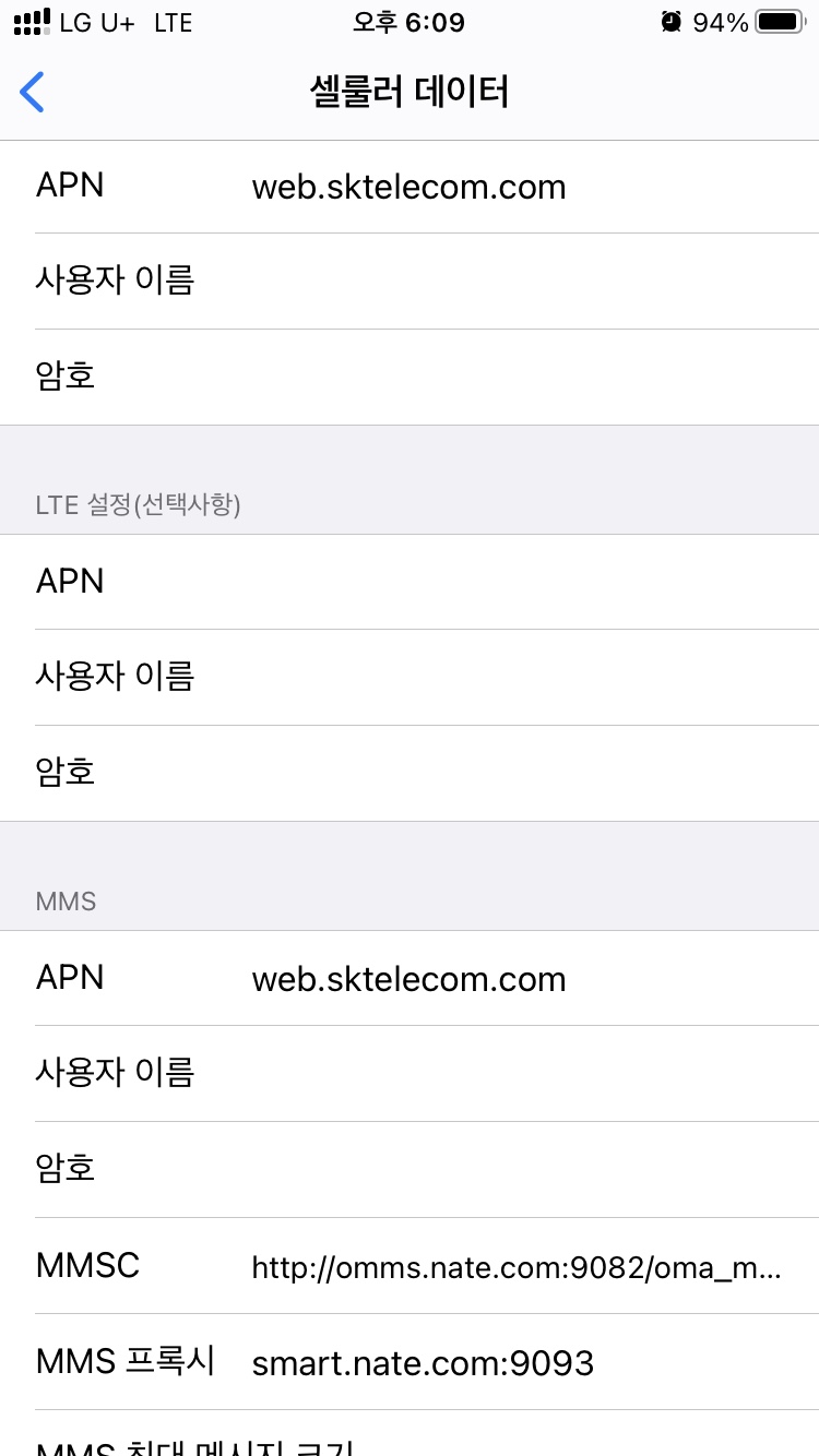 만약 MMS 설정이 올바르지 않는다면 MMS발신 및 수신이 제대로 되지 않겠죠?