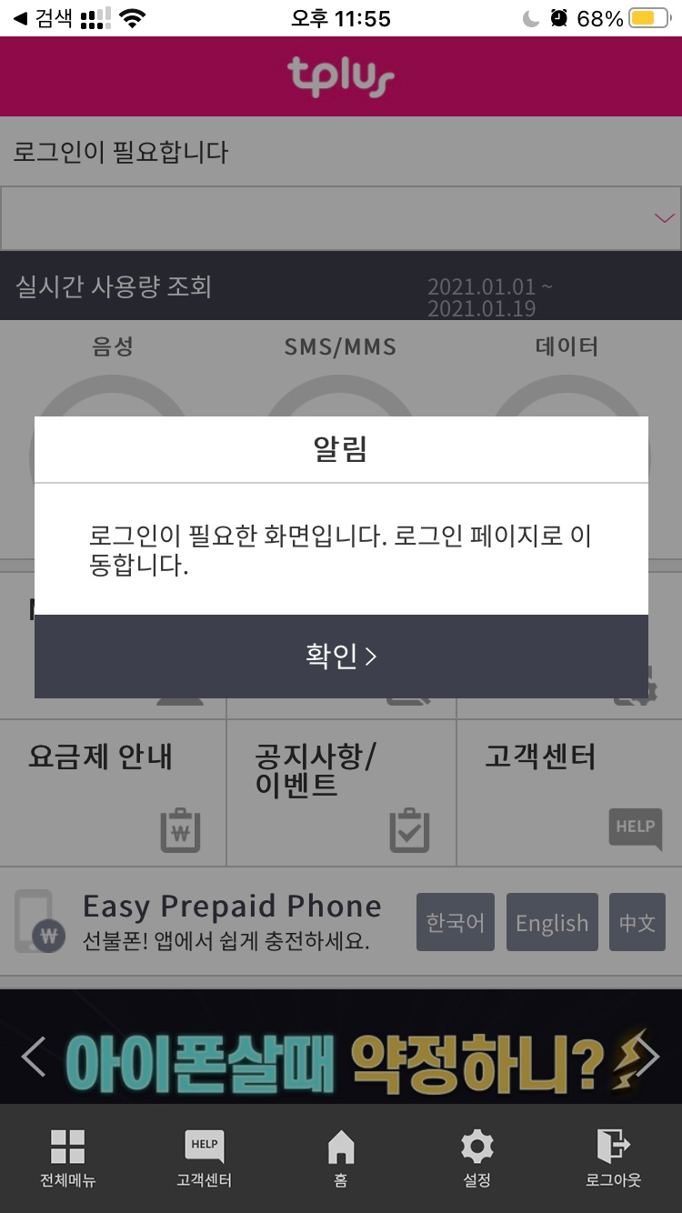 알뜰폰 요금은 저렴해서 좋은데 고객센터 앱이나 홈페이지도 좀 신경써줬으면 하는 바램이 있네요.