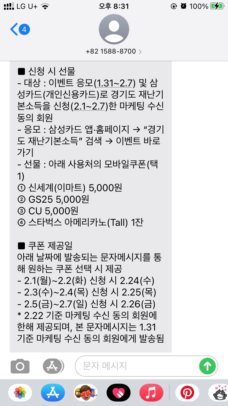 재난지원금이 처리 완료되면 카드사에서도 연락이 옵니다.