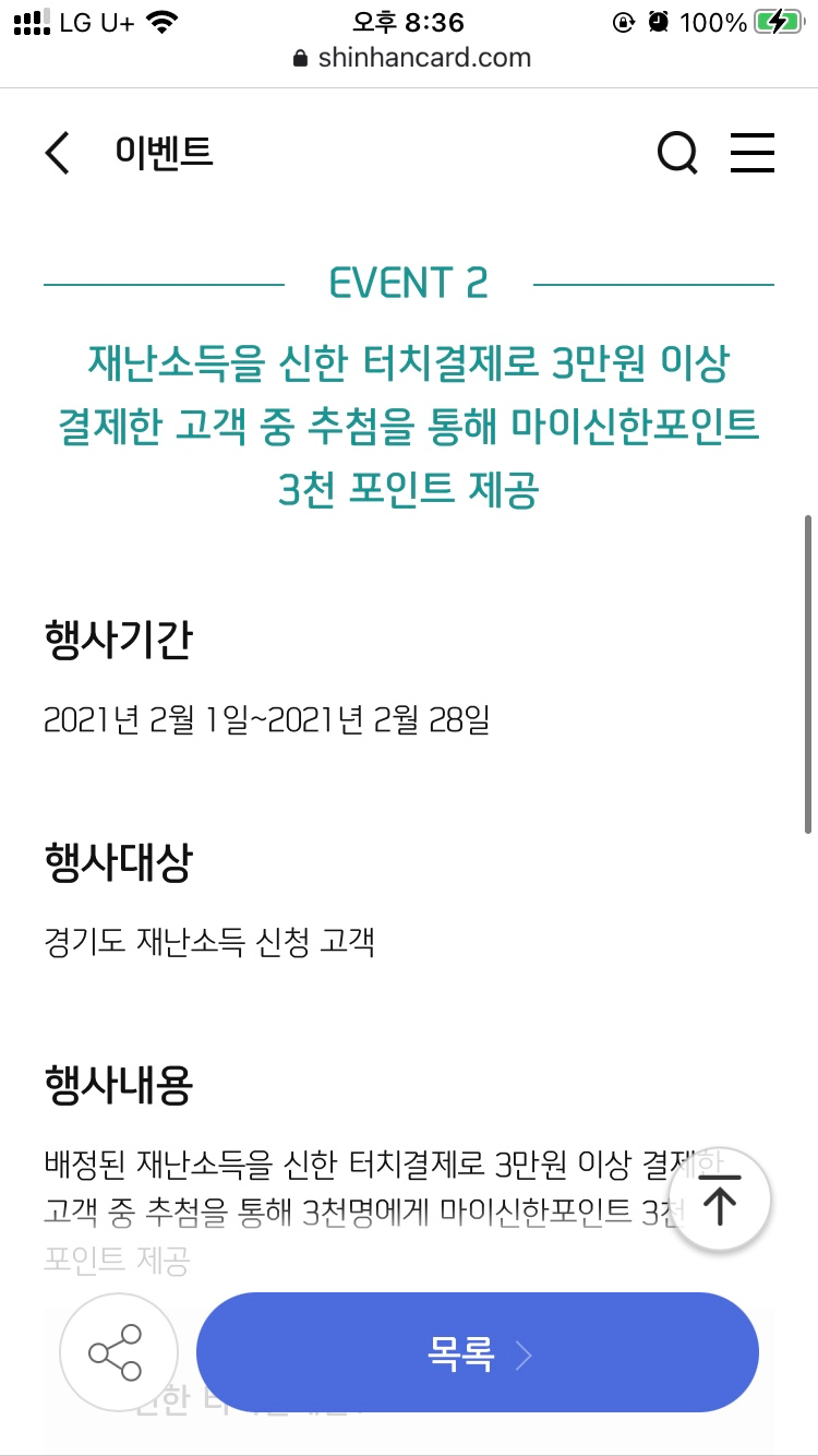 신한카드로 재난지원금을 신청한 고객들에게 2가지 이벤트를 진행합니다.
