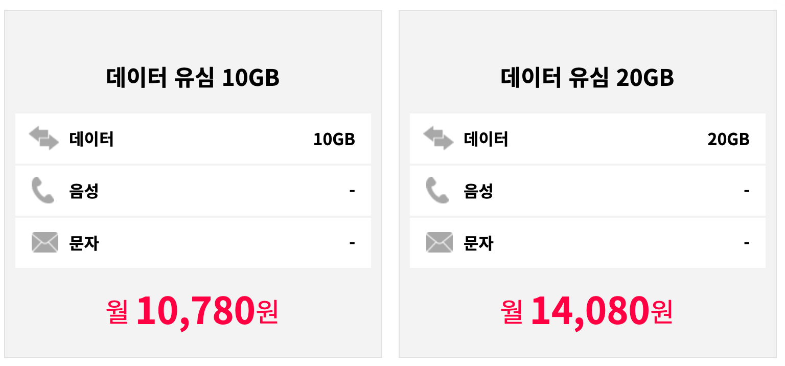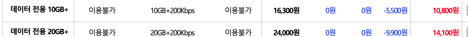 데이터 사용량에 따라 다른데 10GB, 20GB 상품이 있어요.