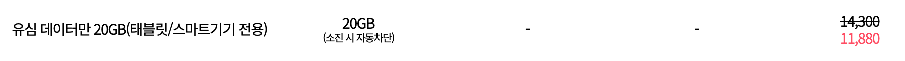빨간색 글씨가 실제 요금입니다. 10GB는 10,800원, 20GB는 14,100원