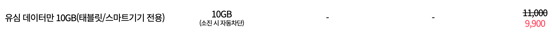 예를들어 10GB 태블릿 요금제로 가입해서 10GB를 쓰면, 데이터가 차단되어 추가 요금 발생을 방지하는 것이죠.