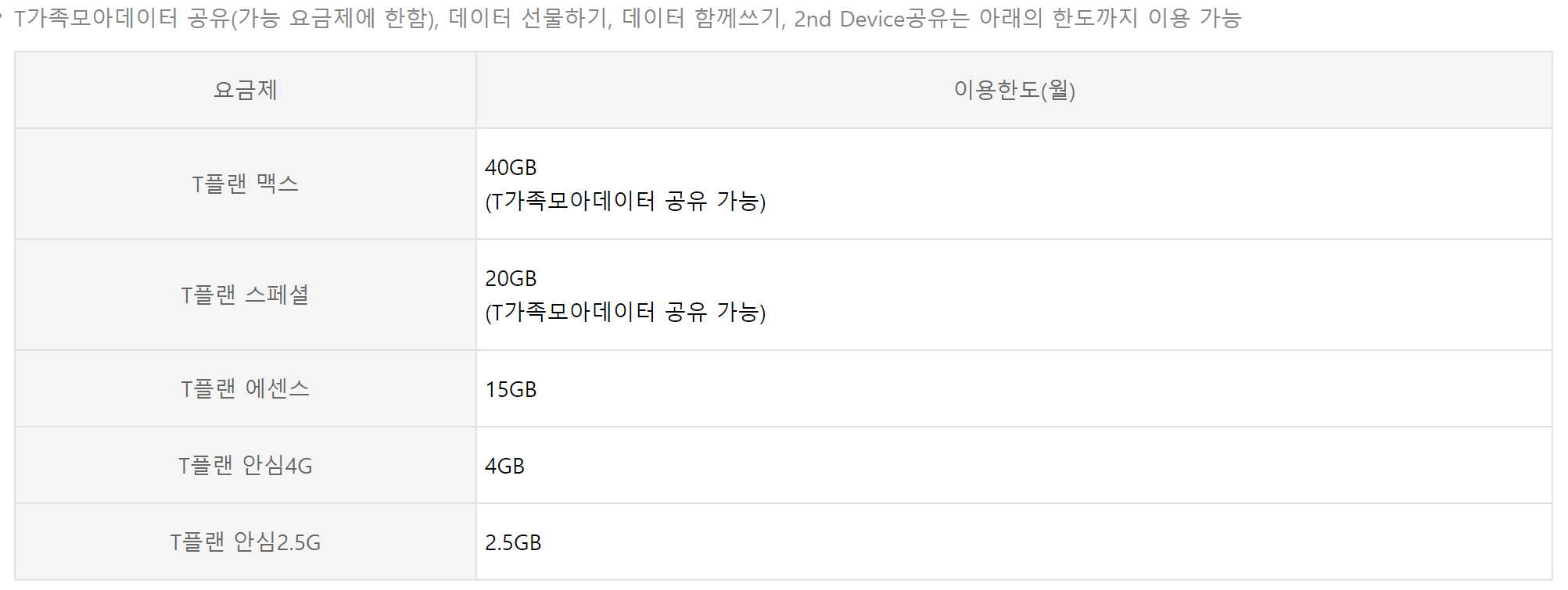 유투브나 넷플릭스 등 동영상 서비스를 이용하면 금방 소진될 양입니다.