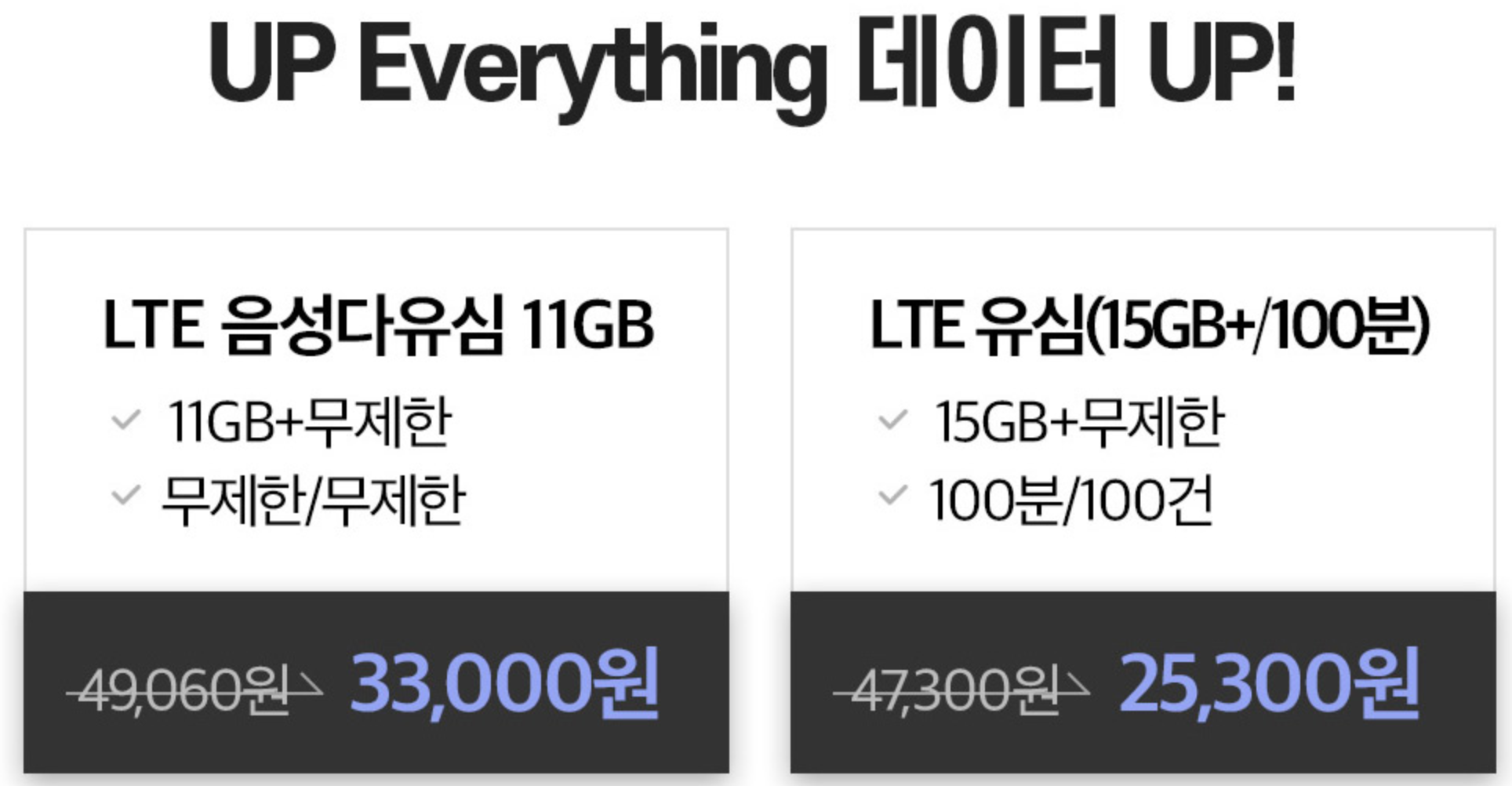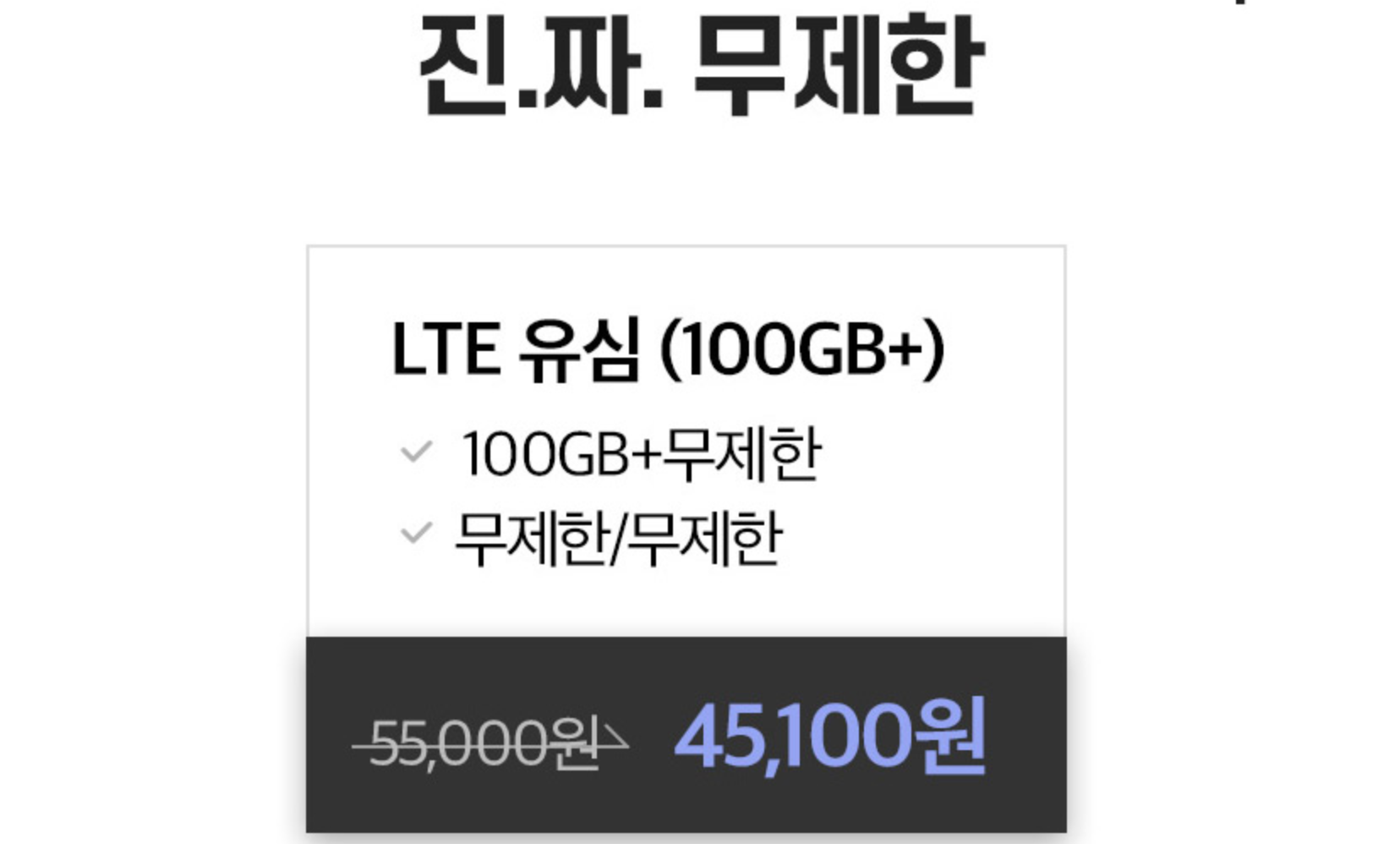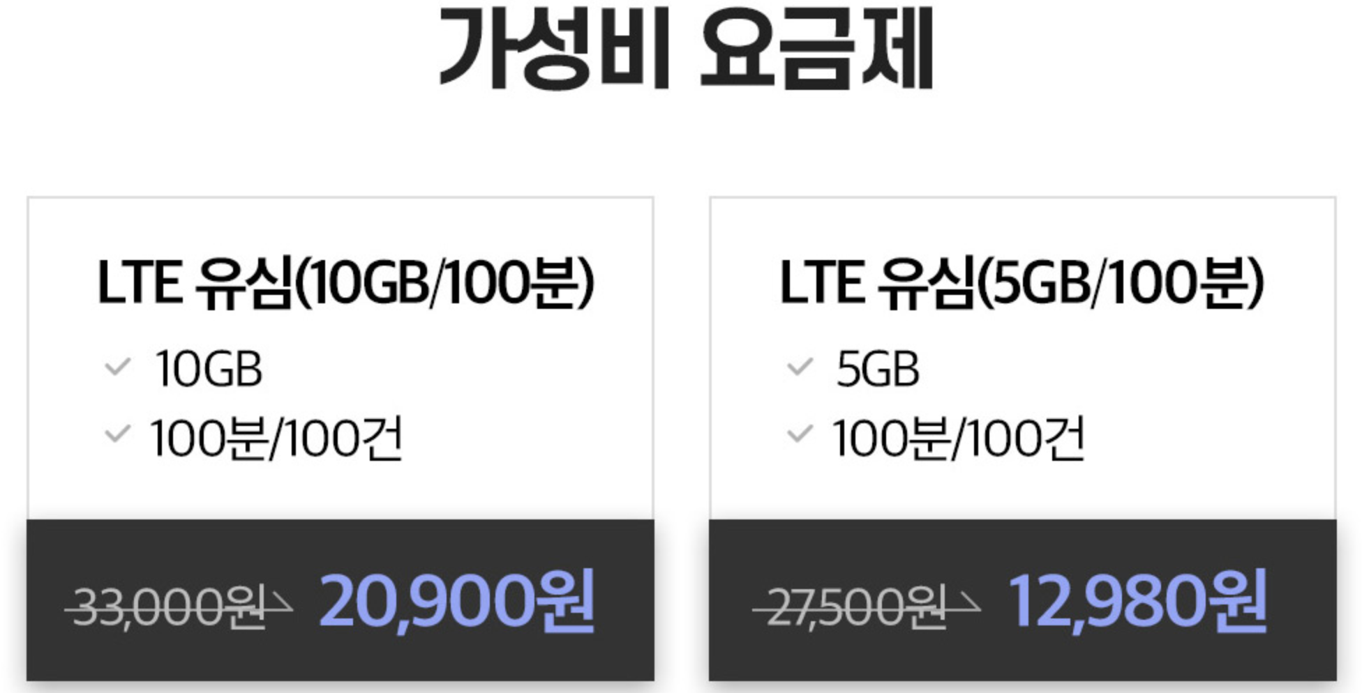 LTE유심(1GB/100분) 요금제를 이용하시면 5,500원에 데이터 1G, 음성 100분을 이용할 수 있는 상품도 있습니다.