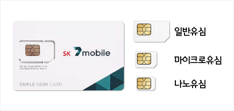 유심은 3in1 타입으로 제공하여 일반 유심, 마이크로 유심, 나노유심을 하나의 카드로 모두 이용할 수 있는 형태입니다.