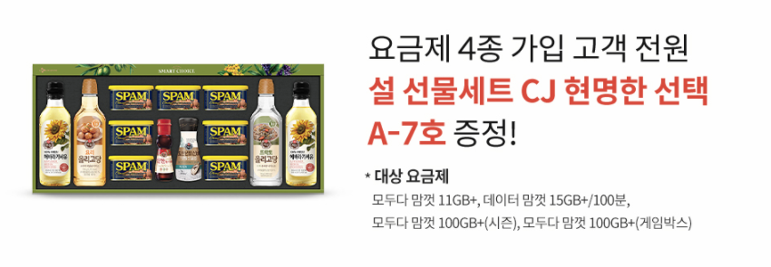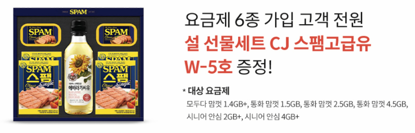 요금제에 따라 다른데, 무제한 요금제를 쓰시는 분, 음성 무제한 요금제는 모두 스팸 선물세트를 받을 수 있어요.