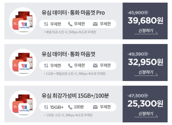 또 '알뜰'이라는 이름에 걸맞게 가성비 좋은 요금제가 많이 있더라구요.
