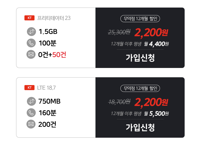 12개월 무약정에 2200원 요금을 제공하고 있네요.