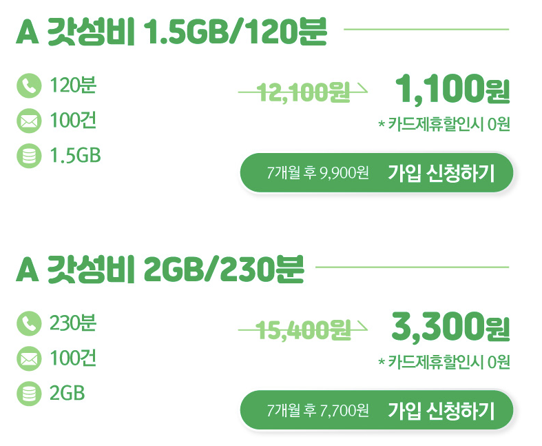 이 업체는 진짜 땅파고 사는지 1100원 요금제를 만들어냈네요. 요금제 이름처럼 갓성비 인정합니다.