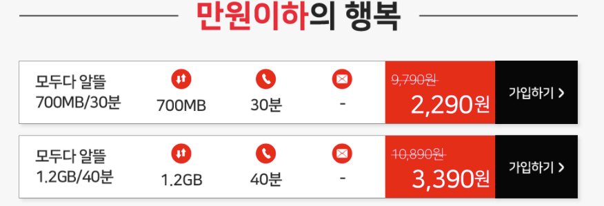 이렇게 싼 가격에 요금제가 많이 생기면 소비자들은 엄청 즐거운 일이죠.