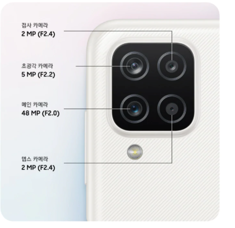 갤럭시 A12에는 총 5개의 카메라가 달려있습니다.