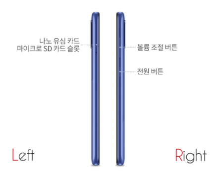 갤럭시 A31의 왼쪽면을 보면 유심카드 겸 마이크로 SD카드 슬롯이 있습니다.