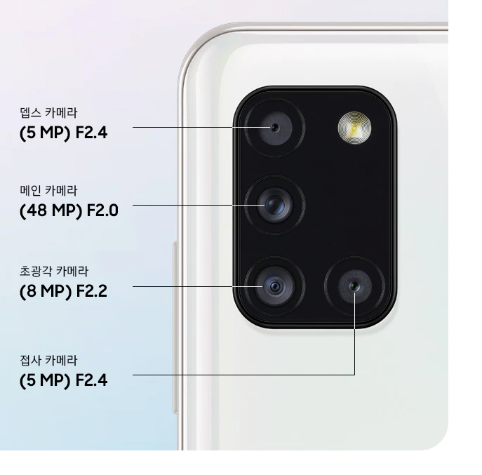 갤럭시 A31 쿼드 카메라의 스펙 어떤가요?