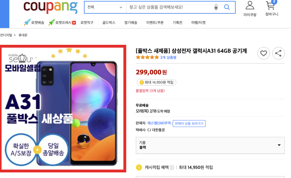 쿠팡에서는 이보다 저렴한 가격인 299,000원 판매하고 있습니다.