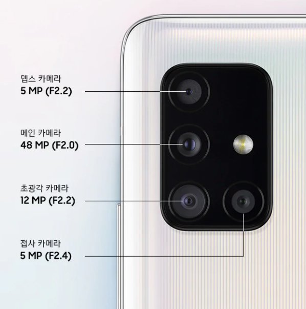 갤럭시 A51에서는 뒷면에 카메라가 4개인 쿼드 카메라를 탑재했습니다.
