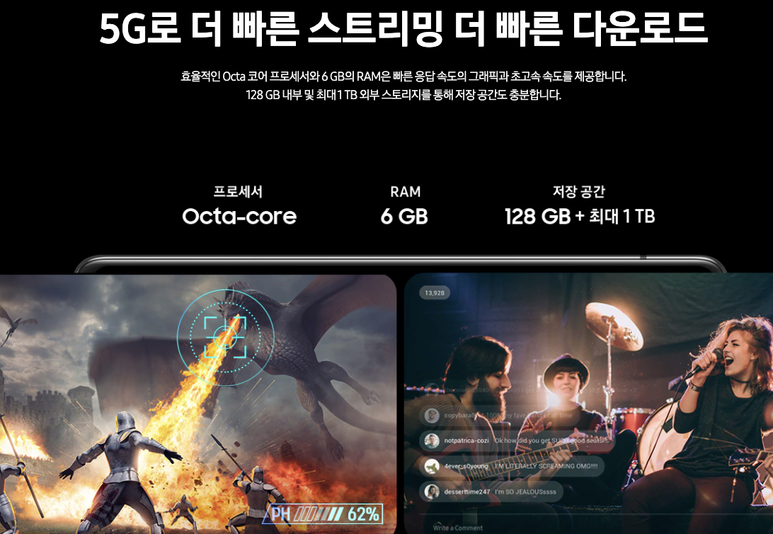 5G 모델, 그리고 램과 저장공간도 넉넉한 제품인데요.