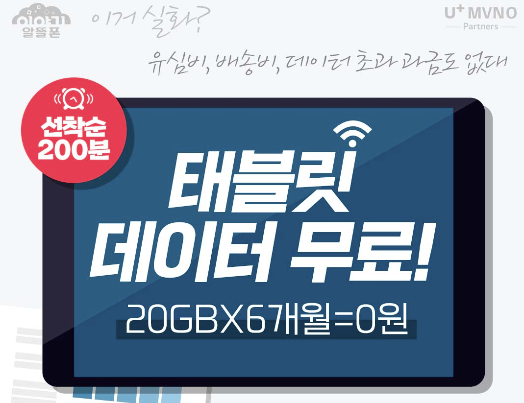 "태블릿 데이터 20GB가 꽁짜! 선착순 200분!"