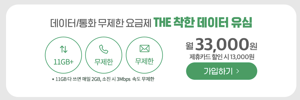 역시 알뜰폰 무제한 요금제를 2종이 있는데, 33000원 요금제는 음성/문자 무제한이고,