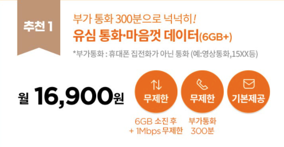 알뜰모바일보다 300원 싼 요금제이지만 데이터는 알뜰모바일이 1.5GB 더 주네요.