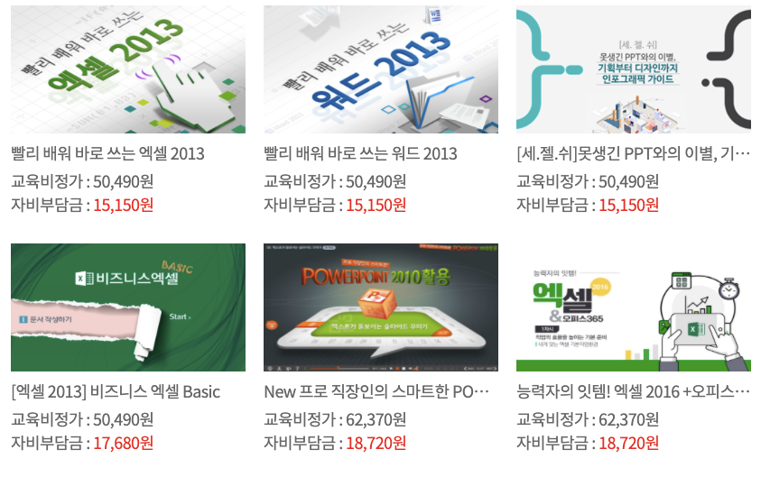 국민 내일배움카드로 최대 85%까지 할인을 받을 수 있으니, 꽤 매력적인것 같아요.